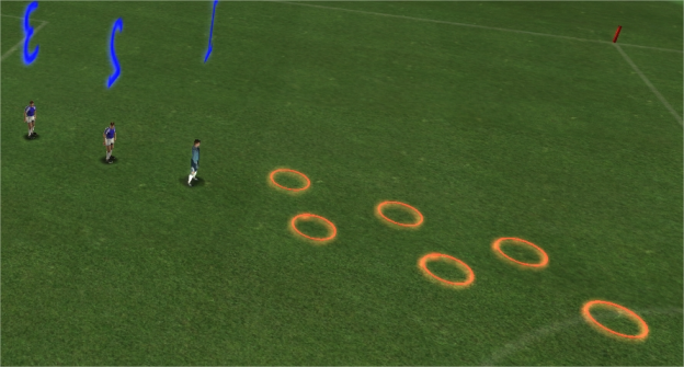 Note : les joueurs ne se placent pas les pieds automatiquements dans les cerceaux.