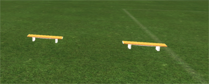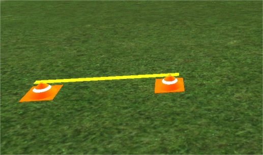Place un barre sur le sol. Vous pouvez orienter la barre avec le clic droit de la souris et en tournant la souris. Typique pour faire faire des sauts.
