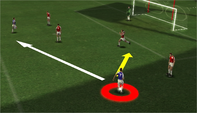 Si un joueur a déjà le ballon et que l'on clique sur cet icône, cela permet de séparer le ballon du joueur pour faire une passe quand le joueur passeur reste immobile (relance du gardien par exemple).