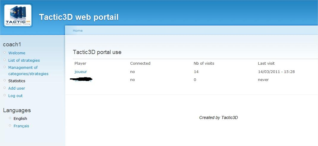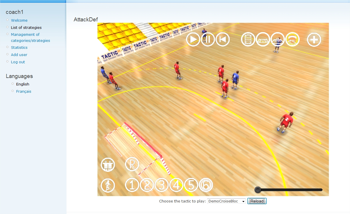 3) the screen for the coach who has can view the same things than the players plus statistics and a screen to manage the strategies.